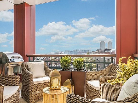 Fully renovated and reconstructed, this Corner residence at Burroughs Wharf features Private Outdoor Space, City and Water views, and Garage Parking. Living area with hardwood floors, custom lighting, fireplace, and private balcony. Impressive kitchen with custom designed cabinetry, stone countertops, high-end appliances, dry bar, and center island. Private walk-out balcony with water views. King-size bedroom with corner exposure, large closets, and custom finishes. Spa-like bath with custom tile and stone and walk-in shower. Deeded self-garage parking and private storage. This highly sought-after property has 24-hour Concierge, visitor parking, gardens, on-site management, marina slips and water shuttle to airport. Burroughs Wharf is moments to the North End, Seaport District, Greenway, Faneuil Hall, North/South Station, Downtown Boston and all major transportation points.