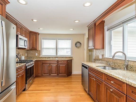 Welcome to 40 Beacon Street! This beautiful & bright 3+bed/3 full bath updated ranch with walk out basement sits on a huge fenced-in lot in the highly coveted Walnut Hill neighborhood! A spacious kitchen w/ ample counter space opens to the dining & living areas w/lovely granite fireplace. Sunroom/potential mudroom with french doors to wrap-around deck is adjacent to the first of 2 potential office spaces. Two bedrooms & 1st full bath with separate shower & tub, a massive primary suite w/linen & walk-in closets, full bath & 2nd set of french doors out to sunny deck space. The partially finished basement has a large bonus/family room, exercise room/2nd office, third full bath, laundry room & plenty of storage in the unfinished space. Sit out on the sun-filled composite deck overlooking a massive, flat backyard with room for anything you can imagine! Gleaming hardwood floors, central air, one-car detached garage & just minutes to Natick Center, shopping, major commuter routes & more!