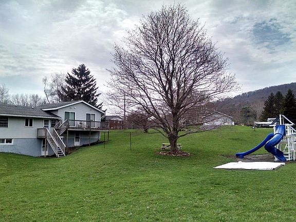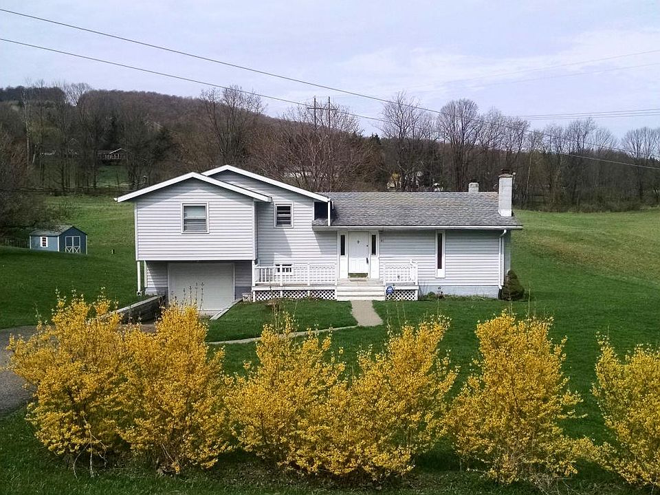 This 3 bedroom, 2.5 bath home on an acre of land offers so many opportunities! The partially finished basement with exterior access is perfect for a recreational space/ gym. The one car garage, as well as detached shed, provides plenty of space for storage and projects. Distant views and wildlife can be enjoyed from the expansive living room bay window, as well as the second story deck off the two rear bedrooms. Tomato plants and blueberry bushes thrive during the summer months. The mature crimson maple tree is a sight to behold all year long. Close to Cornell & TC3.