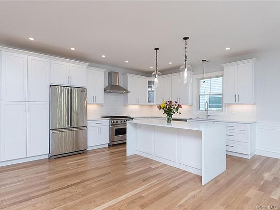 Luxury Townhouse, NYC Sophisticated Chic. Walking distance to Quaint Fairfield Center of Town, Train, numerous restaurants with outdoor cafe dining, boutiques, stores, Dr's, Medical facilities, Library, enjoy outdoor summer music at the Gazebo and Farmers Market. 1.5 mi to 2 Beaches, Par 3 Golf & Tennis. Open floor plan boasts 9' ceilings, separate Dining Room w/vaulted ceiling and Office on 1st floor w/Sliding Glass Doors to Patio from Dining room. Family Room with Gas Fireplace is open to Kitchen w/ custom cabinetry, 7' Quartz Island, Thermador Appliances, 36" 6 Burner Gas range, Refrigerator, Wine Cooler. Foyer, Mudroom & Powder Room complete the 1st floor. Master Bedroom has a Vaulted Ceiling, Walk in closet, Full bath with Pedestal Tub, frameless glass shower & double sinks. Extensive custom Millwork, Ship lap, and designer lighting throughout. Approx. additional 800 sq ft finished Lower Level Rec Room with Full Bath. 2 Car Attached Garage. HOA approx $3000 annual for insurance on structure. (Interior insurance required by owners. Sprinkler system and White Vinyl fenced backyard. Lovely, quiet Beaumont Park at the end of the street.