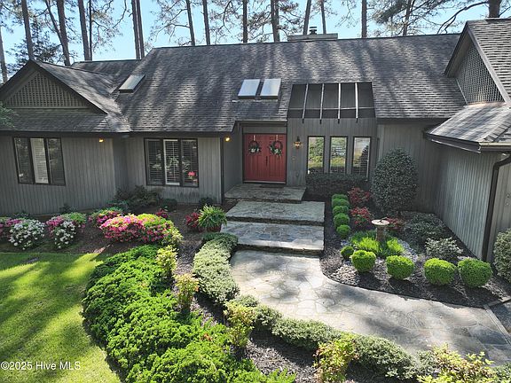 Located on a large pond in prestigious Fairwoods on 7 this home was worth the wait! Great location near No 7 Clubhouse with long vistas of water and fairways. Water views from every room, plus expansive Carolina room across the back of home overlooking the water and golf course. Over 3900 square feet living area plus additional 645 feet unfinished space in lower level. Main level boasts soaring ceilings, large rooms, office, guest suite and primary bedroom - also overlooking the water. Kitchen has island, breakfast area and access to the Carolina room and screened porch. The lower level has a large gathering area with walk-out covered patio, two additional bedrooms plus large storage room and separate storage area. Fairwoods on 7 is a Community of custom-designed homes built around Rees Jones' Pinehurst No.7 course and borders on the Pinehurst No 4 course and the Donald Ross storied No. 2, home to U.S. Opens. Residents can drive their golf carts to the first tee of Pinehurst Courses 1-5, Pinehurst Country Club's varied amenities and the charming Village of Pinehurst, a National Historic Landmark.Pinehurst CC Signature membership available for transfer with Byer to pay prevailing fees.