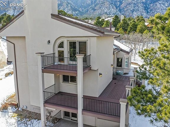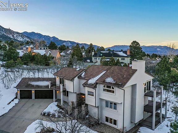 Welcome to this beautiful custom-built home thoughtfully designed by Langley Architects. As you enter the home you realize the interior is just as stunning as the exterior. The first impressive touch is the impeccable Douglas Fir Beams crafted to flow throughout the home. Sitting on just over ½ an acre the panoramic views of the Rocky Mountains are stunning. The spacious living room is modern & warm with open concept & vaulted ceilings which provides an airy feel. The large kitchen was recently remodeled with modern cabinet fronts, shiney black appliances, Blanco granite sink, stone countertops & backsplash, breakfast bar or head out the slider door to another patio for your morning coffee! The formal dining room features a large window, allowing natural light to flood the room. The spacious primary BR provides a secluded retreat for total relaxation w/a private 6 x 10 ft. deck & an updated owner’s ensuite w/frameless walk-in shower, white quartz countertops & backsplash, tile floors, separate dual sinks w/gorgeous Graff fixtures & large insulated tub. Down the hall is another BR which provides a space for guests, a private bath, walk-in closet as well as a 5 x 13 ft. private deck! Each of the 2 main level BR's are separated by a full-size bath. Head downstairs to enjoy a game of pool or a quiet evening by the cozy fireplace or for those warmer days walk out to the covered 8 x 19 ft. stamped concrete patio. Finally, as a grand surprise head out the living room door to an outdoor entertaining area to enjoy the sweeping views from the 9 x 46 ft. wrap around Trex deck! This home also features a 3 car garage w/ample storage throughout & a private door out to either the front or backyard landscape w/a 3 zone sprinkler system. Located in the highly desirable Broadmoor Bluffs Park, just minutes from local shops, restaurants, and parks, this home offers convenience and luxury in equal measure. With its charming character and beautiful surroundings, this home is a must-see!