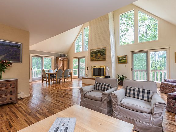 Dramatic Contemporary in sought-after South Ridgefield neighborhood - Incomparable Twin Ridge. Four bedrooms, 2.5 baths. Sun-filled living room & dining rooms with dramatic floor-to-ceiling fireplace, vaulted ceiling & double sliders to wrap around deck for year-round entertaining. Bright & light eat-in kitchen with plenty of cabinet & work space, double ovens, hardwood floors & large breakfast nook-perfect for growing family. Three main level bedrooms & full bath. Private master suite w/full bath, dressing area, walk-in closet, art studio/office & loft. Finished above grade lower level with large windows, wood-burning stove, laundry room & half bath. Large backyard play space. A fantastic opportunity to live in the coveted neighborhood of Twin Ridge. Ideal for bikes and strollers & hiking trails are just down the street at Weir Farm. Great location for commuters & 5 minutes to Rt. 7 & train.