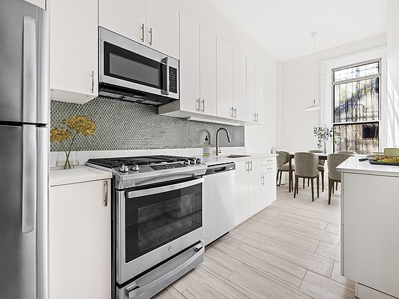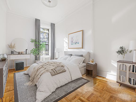 Nestled on the idyllic Berkeley Place, this recently renovated gem awaits you. As you enter this second-floor sanctuary (just one flight up), you'll be greeted by soaring ceilings and an abundance of natural light that highlights the meticulous craftsmanship put into every detail. Key Features: Spacious Elegance: The generous proportions of this apartment create an open and airy atmosphere, making it a true home. The split layout places the bedrooms strategically on either side, offering privacy and convenience. Primary Bedroom Retreat: The back-facing primary bedroom is grand in size, easily accommodating a king-size bed and a home office space. Enjoy picturesque views of Berkeley Place gardens, bathing the room in southwestern sunlight during the warmer months. Flexible Second Bedroom: The front-facing second bedroom, spacious enough for a queen bed, provides versatility. Whether you prefer a separate home office space or an additional bedroom, the choice is yours. Versatile Living Space: The substantial living room offers a canvas for various layout options. Whether you envision a dining area, a cozy entertainment space, or even a dedicated workspace, this room adapts to your lifestyle. Modern Kitchen Delight: The top-to-bottom renovation of the kitchen showcases gorgeous custom cabinetry, a chic and colorful nickel backsplash, Caesar stone countertops, and brand-new stainless-steel appliances. The eat-in kitchen overlooks the serene gardens below, creating a perfect spot for dining. Designer Bath: A beautifully designed bathroom features a shower/tub combo and ample storage, adding to the overall appeal of this incredible space. Additional Amenities: The apartment includes a dedicated storage area in the basement, ensuring your living space remains clutter-free. Enjoy the convenience of free shared laundry facilities and bike storage in the basement. Prime Park Slope Location: Situated in the northern section of Park Slope, this location places you in the heart of the neighborhood. Explore the vibrant amenities and restaurants along 5th and 7th Avenues, take a trip to Prospect Park just a few blocks away, or peruse the weekend Farmer's market at Grand Army Plaza. With multiple train options, including the 1, 2, B, Q, and R trains, your commute is a breeze. This remarkable apartment is available now, offering you a perfect blend of elegance and practicality. Don't miss the chance to make it your own!