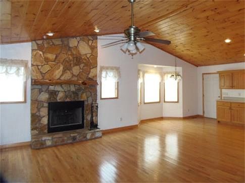 Living is easy in this 2-bedroom/2-bathroom country mountain home. Situated on .59 acres this home features an open floor plan, casual great room with stone fireplace for those cool evenings, hardwood floors, vaulted tongue/groove ceilings and a spacious kitchen that looks out to the great room. Large master suite with walk-in closet, private bath and deck area. Covered deck to entertain family and friend or just relax and enjoy the peace and tranquility of mountain living. Attached 2 car garage with plenty of room for a workshop.Property is surrounded by lush greenery and ideal for gardening.
