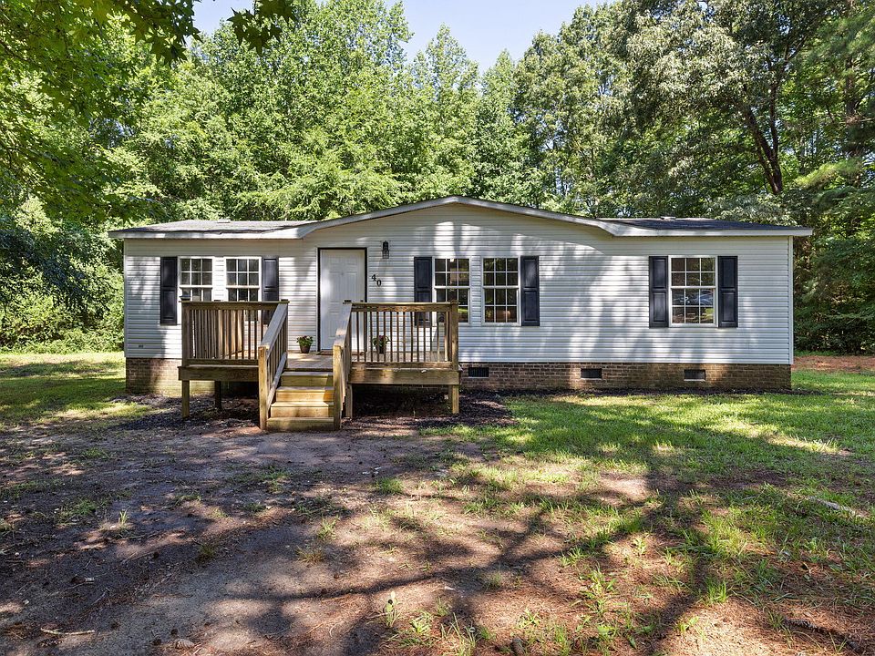 OH CANCELLED - offer accepted! Wow! Discover your peaceful retreat on 1.24 acres in Louisburg! This charming 3 bedroom, 2 bathroom manufactured home has been tastefully updated to offer modern comfort while maintaining its country charm. This wonderful sun-filled home showcases a beautiful eat-in kitchen with white cabinetry, stunning quartz countertops, and stainless steel appliances. The kitchen opens to a cozy living room - great for entertaining or unwinding after a long day. This warm and inviting home has fresh paint & flooring throughout. The owner's suite has a nice closet and big full bathroom boasting a large soaking tub. The home also offers 2 additional good sized bedrooms with great closet space and a 2nd full bath. Unwind on your large 1.24 acre lot - perfect for gardening, outdoor activities, entertaining, or simply enjoying the tranquility. Experience the best of both worlds with easy access to Louisburg amenities while enjoying the serenity of rural living. Don't miss this opportunity to own a piece of paradise! Schedule a showing today. 1Yr Home Warranty included if close w/in 40 days of an executed offer. OH Saturday, July 27th, 11-12:30.