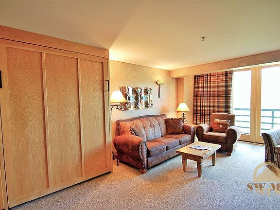 Great Spanish Peaks facing 1-bedroom, 2-full bath Shoshone condo on the 3rd level, just steps from the ski lifts in the base area of the Big Sky Resort, home of America's Biggest Skiing! Sleeps six with the wall bed and sofa sleeper in the living room, complete with propane fireplace, viewing balcony and full kitchen. Shoshone building amenities include: room/bell/housekeeping & concierge services, children's programs, spa services, valet parking, health club, restaurant, bar, etc. Great vacation property!