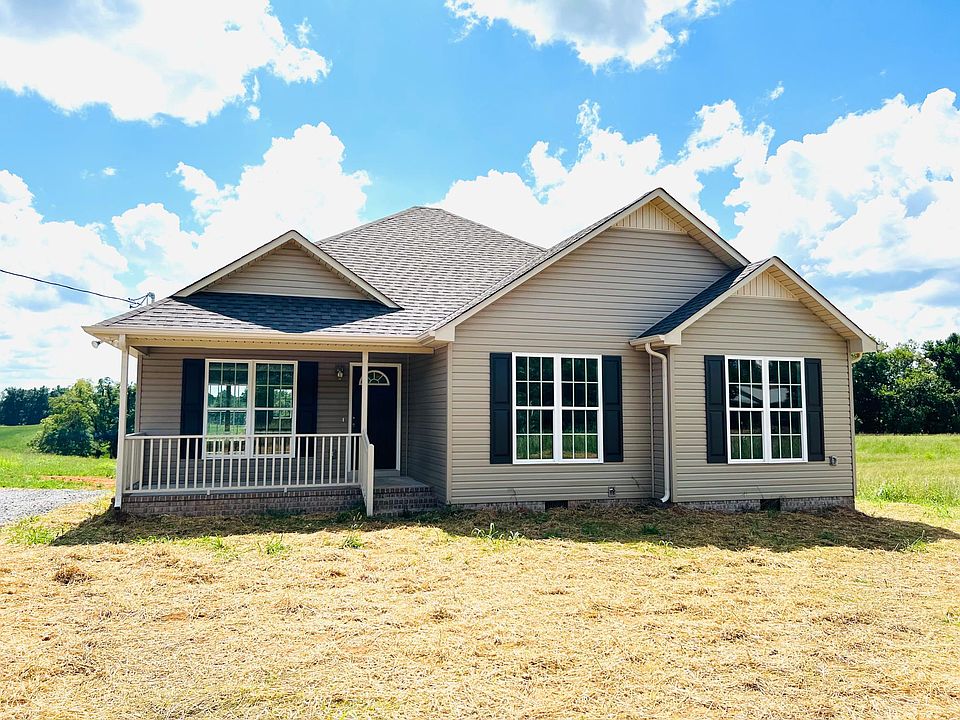 NEW HOME! 4 bedrooms, 2 baths, country living, convenient to Fayetteville, TN. Home has porch and deck for enjoying the views. Main bedroom is separate from other bedrooms. Large, open living/dining and kitchen areas. Main bedroom has trey ceiling and ceiling fan. Vaulted ceiling in living area. Dishwasher is included. This new home is available with a one-year lease. The first month's rent and deposit are required to move in. A pet is allowed with an $800 non-refundable pet fee and an additional $25/mo. A rent-to-own option is available. Call for information about rent-to-own or to rent.