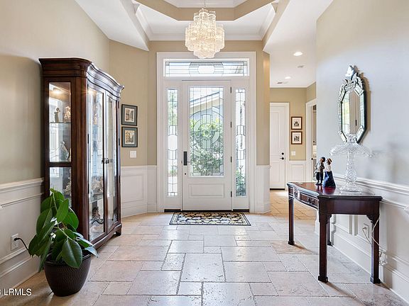 Custom built lakefront home! This home is ideally located at a cul-de-sac's tip with private views of the community's lake and maritime forest, yet is a short walk to its amenity center (pool, fitness center, spa, restaurant, etc.). Updates since original construction include new kitchens (indoor and out), decorative glass entry, garage cabinetry, and more. It is difficult to imagine purchasing a waterfront homesite, building a custom home with comparable finishes, adding a dock/bulkhead and being under this price. It is a wonderful opportunity!