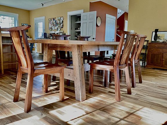Once in a lifetime opportunity on 25 acres. Orchards & high blueberry bushes with sweeping views across the valley, this contemporary home blends natural beauty & light with modern living. The open floor plan brings families together, while allowing space for peace & quiet as well. The granite & tile kitchen, beautiful cabinetry & hardwood flooring make it a pleasure to call this house; home. 4 large bedrooms plus an office, 2.5 baths, bonus room above barn, solar, and the view....awesome!