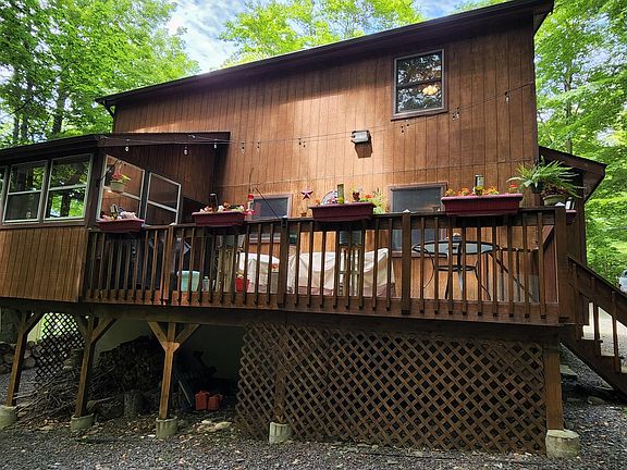 Meticulous contemporary home in the heart of the Northern Poconos! This home features an open floor plan, cathedral ceilings, huge primary bedroom, spacious loft and a sunroom off the back of the home facing the forest! 3 bedrooms, 2 full bathrooms, and 1526 finished sq ft. The Hideout is an amazing recreational community in the heart of the Northern Poconos. The gated community boasts 3 private lakes, 4 additional ponds, beaches, pools, a challenging 9 hole golf course, indoor and outdoor tennis courts and a winter sports complex with skiing, tubing and skating.