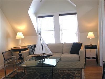 Beautifully renovated, this upper level condominium is steps from the Boatslip and Mussell Beach gym. Vaulted ceilings throughout, hardwood floors in the principal rooms, two bedrooms and two baths. The new kitchen has cherrywood cabinets and stainless steel appliances. There is a small deck off the entry, and a patio on the West side of the house. Two deeded tandem parking spaces(for medium size cars),full shared basement for storage and laundry. Excellent rental income.!