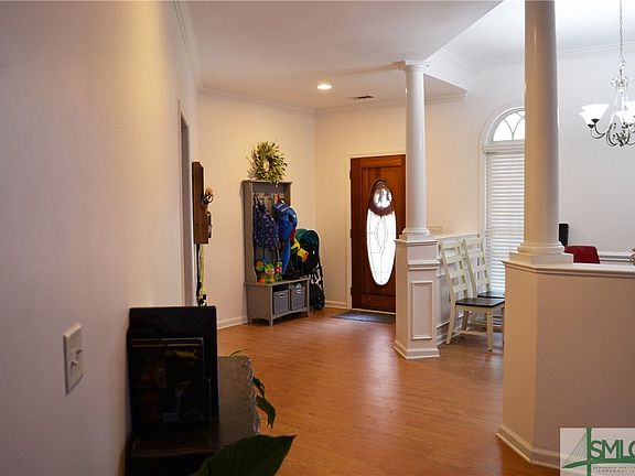Price Reduced on this sought-after home in Strathy Hall Subdivision! Situated on a sprawling 0.66-acre wooded lot and tucked away in a cul-de-sac lot. This beautiful 5 bedroom, 3 bathroom brick-front home boasts of a large kitchen with island, pantry, and breakfast room, Formal dining, and an open Great room with gas fireplace. On the main level you will find the large Master suite with tray ceiling, large walk-in closet, double vanities, garden tub and separate shower as well as two spacious guest bedrooms and a full bathroom. Upstairs you will find an additional bedroom that could double as a media or game room and a Second master or Mother-in-law suite with full bathroom and large closet. Enjoy your tranquil backyard from the screened-in porch or grilling patio under the shade of the touring live oaks. Easy access to shopping and schools.