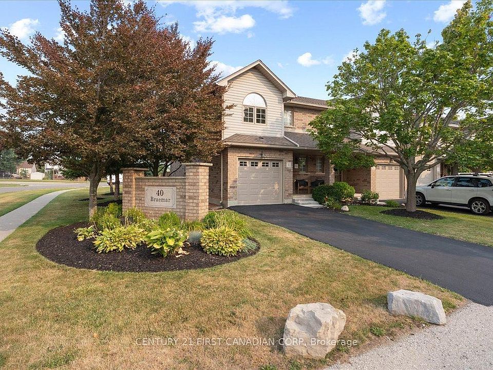 Welcome to 1-40 Braemar Ave in the charming community of Caledonia. This meticulously cared for two-storey end-unit condo backs onto a spacious green space with a park and is conveniently located near schools, the Grand River, shopping, and trails. The main floor features a central kitchen with direct access to a private terrace that includes a new deck, new fence, and a gas BBQ hookup. Upstairs, you will find a large primary bedroom with double closets, two additional bedrooms, and a 4-piece bathroom. The finished lower level, complete with new flooring, offers extra living space perfect for relaxing with family. The home was freshly painted throughout (2023). Additional highlights include parking for two vehicles in the driveway and an attached garage with interior access.