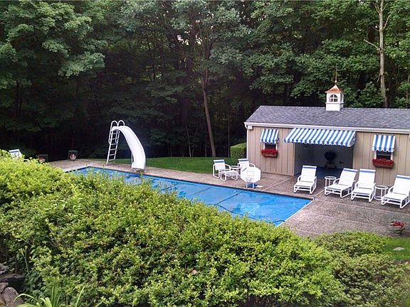$100,000 price reduction with a gorgeous POOL! Privacy and nature abound in this lovely Cornell Colonial set on just over 3 acres. Estate like setting, beautifully landscaped and meticulously maintained, this 5 bedroom, 4 bathroom home has been lovingly cared for with many updates and improvements. Gorgeous eat in kitchen with solid cherry cabinets, subzero refrigerator, and Wolf range opens into sunlit drenched sunroom which is surrounded by windows, with beautiful property views. Spacious family room with wall to wall carpeting(hardwood floors underneath)is adjacent to kitchen. Impressive 1st floor master suite with 18 ft ceilings, framed with a Palladian window creates a virtual separate living space for adults. Ensuite with spa like bathroom including Jacuzzi and steam bath. 4 bedrooms and 2 bathrooms complete the second floor. Beautiful pool with automatic cover, along with separate pool house decorated with Brown Jordan furniture. Energy Efficient Whole House 20kw Gererator(serves house and pool)with 5 propane tanks owned by the seller come with house. Many other updates include: Azek dormers;Dry Basement System with Redundant Pumps; Culligan Water Softener and Electronic Softener; 2 Humidex Air Control Systems; Central Vacuum System; Inground Sprinkler System. Included in sale: Brown Jordan Pool Furniture; Basement Refrigerator; Outdoor Gas Grill; Luxury Roberm Medicine Cabinets with Internal Electrical Plugs. Access to town forest. Don't miss interior virtual tour!
