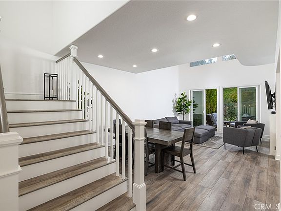 Experience modern luxury living at 40 Brassie, a stunning 3-bedroom, 2.5-bathroom townhome nestled in the prestigious guard-gated community of Coto de Caza. Step into an abundance of natural light accentuated by expansive windows and sleek sliding doors. The open floorplan boasts wood-like flooring throughout, leading you to a remodeled kitchen featuring shaker cabinets, stainless steel appliances, and a charming farm sink overlooking the front yard. Enjoy direct backyard access from the kitchen’s breakfast nook, perfect for indoor-outdoor living. Entertain guests in the oversized dining area and living room, adorned with two-story ceilings and oversized sliding doors framing the manicured yard. Downstairs, discover a convenient laundry room and guest bathroom. Ascend the grand staircase to find a spacious hallway leading to three bedrooms, including a primary suite with a balcony offering serene yard views. The updated primary bathroom features a double sink vanity, soaking tub, and step-in shower. Two additional bedrooms and an updated hall bathroom complete the second floor. Recessed lighting and window shutters are in all the right places. Step into the private yard, where ample space includes two distinct sitting areas. The charming fountain adds to the peaceful surroundings. This corner unit includes a two-car garage and is ideally situated within walking distance of the Coto de Caza Golf and Racquet Club, offering the epitome of refined living. Don’t miss out on making 40 Brassie your home.