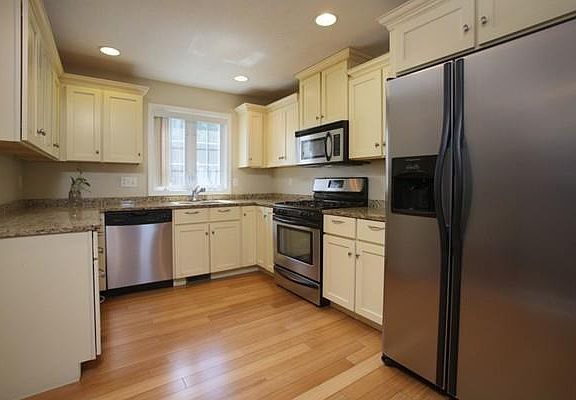 Rare end unit in highly sought after Minuteman Village. Every room boasts ample windows and sunshine everywhere. Gorgeous home features an open concept first floor w/ fabulous kitchen, stainless steel appliances, granite counter-tops and endless cabinet/counter space. Gleaming bamboo floors! The upper levels consist of 3 large bedrooms including an en-suite Master Bedroom. Two and a half bathrooms! Huge 2 car garage! Closet in basement provides ample storage space! Second floor laundry with BOSCH Washer and Dryer! This young townhouse in Pristine condition has Central AC and every amenity you wish for. This perfectly located home is within 5 minutes of the middle and high school! Walk to bus stop, Whole Foods, Stop and Shop, Traders Joe's & fine dining! On the historic Minuteman Bike Pathway in a vibrant, close knit Minuteman Village community! Beautiful landscaping! 100% owner occupied. Don't Miss out on this Rare Opportunity!