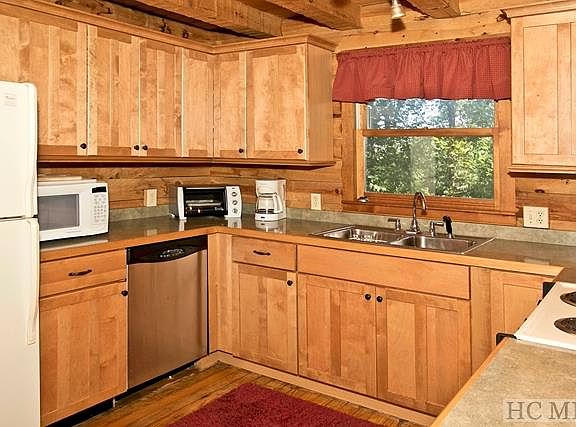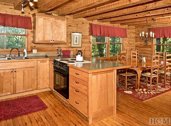 This is an adorable in town log home. Located at the end of a street with some mountain views. Good mountain views in the winter. Hardwood floors, metal roof, wood burning fireplace, 2 rocking chair porches, nice yard, and very well maintained. This would make a great year round home, weekend home, or desirable rental property.