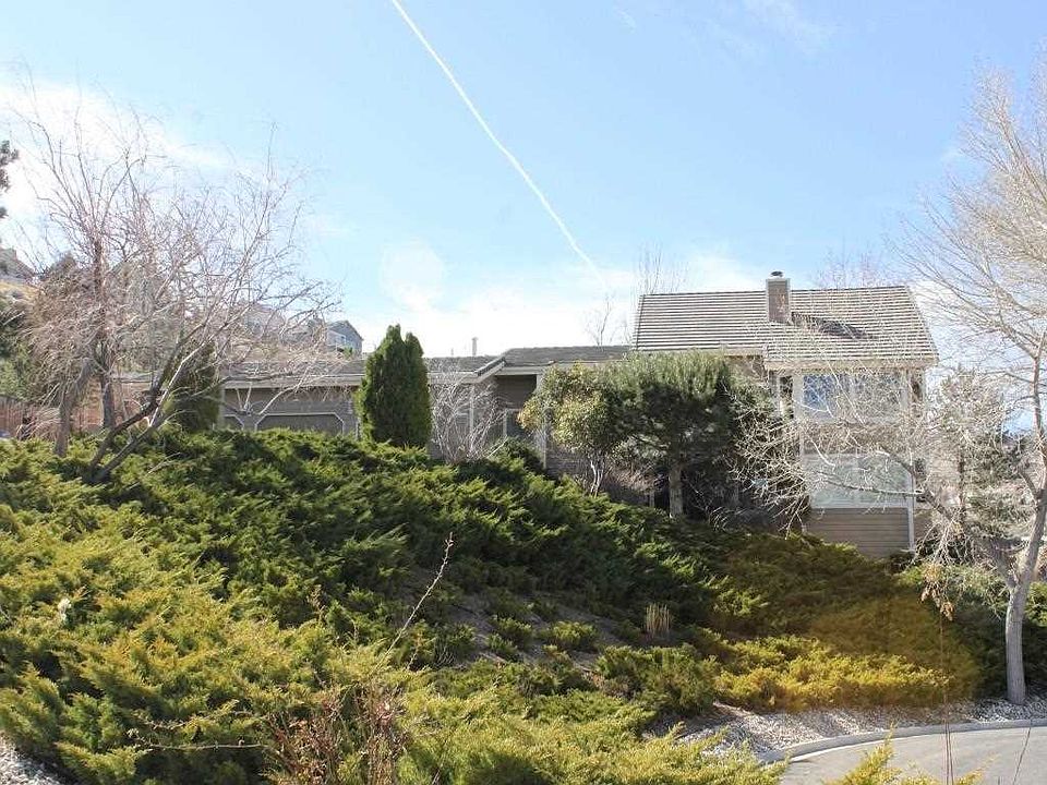 What a beautiful home, located in Southwest Reno on over an acre of private park-like space. Private cul-de-sac and tremendous city views. Living space is on the top level of this home, and the bedrooms are downstairs. The back yard is incredible with lots of grass, fruit trees and garden beds. Teak hardwood flooring in much of the upstairs. 3-sided gas fireplace separates formal living and family rooms. Large dining area and kitchen has an extra dining nook. Vaulted ceilings and lots of light upstairs.