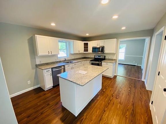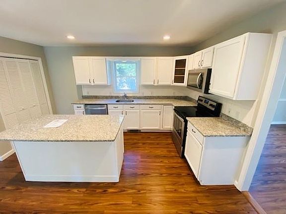Move right into this update Cape located in Marion Village. Home offers many updates on the interior and exterior. Open floor plan, large bedrooms, dinning room and fireplace. Freshly painted, new kitchens, new bathrooms and new flooring. Property also has detached garage behind the property that is perfect for additional storage. This home will not last and is very modern.