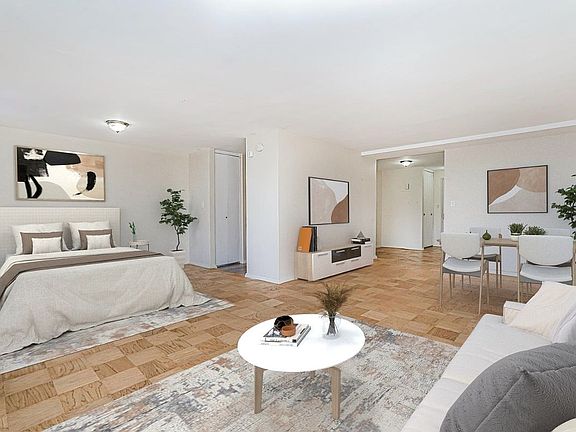 The building offers luxury-style amenities, including a doorman, gym, pool, party room, and laundry facilities. Maintenance includes all utilities for your convenience (heat, cooking gas, electricity, real estate taxes, water & master policy insurance).