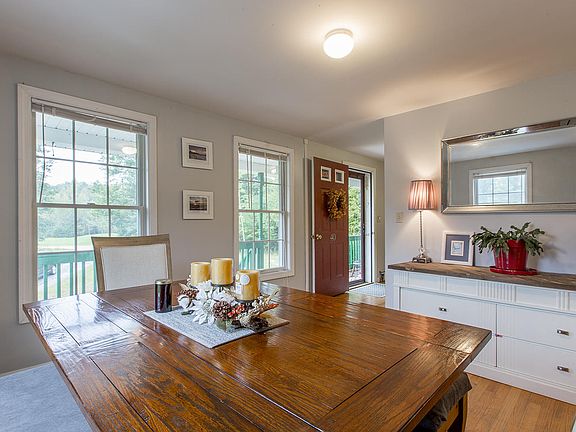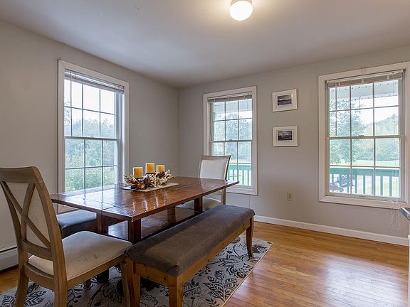 Sitting beautifully at the end of a privately maintained dirt road sits an adorable 3 bedroom cape with a farmers porch. The home is located on a large almost 10 acre lot perfect for exploring. The home offers hardwood floors, new carpet on the second floor, a pellet stove, first floor laundry, full bath on the second floor, and a walk out basement that could be finished for a mudroom or extra space. This home has plenty of parking and is located close to Route 125 making it a great commuter location.