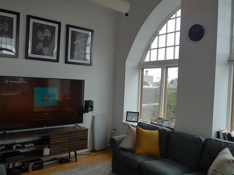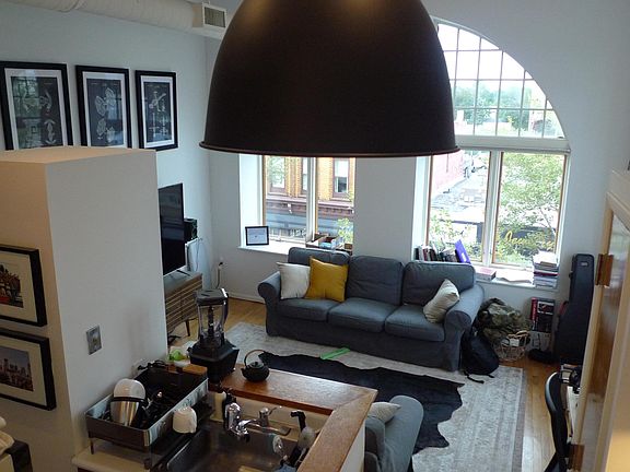 Beautiful loft-style studio apartment for rent. Hardwood floors, washer & dryer, abundant natural light and views of Broad Street. Large platform/loft area for sleeping.