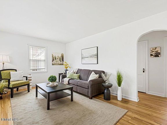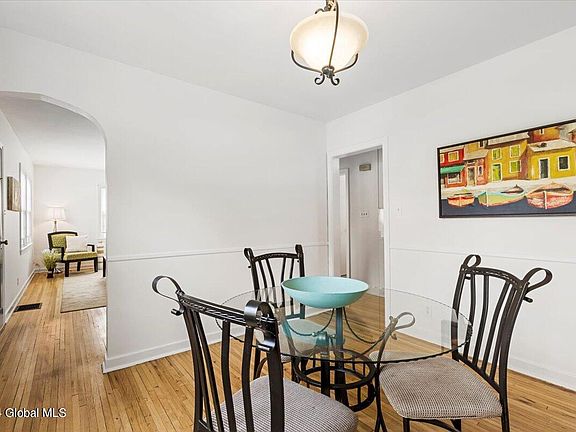 Located in the Elsmere Elementary/Bethlehem School District, 40 Brookman Ave. is an expanded Cape Cod-style on a quiet dead-end street. Freshly painted, this three-bedroom, two-full bath home has a main floor with a bedroom, full bath, living room, dining room, and kitchen with a breakfast area. The step-down den, with its vaulted ceiling and fireplace, opens to a back deck and yard. Upstairs, there are two more bedrooms and another full bath. The garage area was partially converted into living space while still including a storage area. Nearby rail trail and walkable distance to stores and plazas! Updates: electrical, gas furnace (2021), central air (2022), roof (2018), H2O heater (2021), dryer (2022), fridge (2022), repointed chimney. Home Sweet Home.
