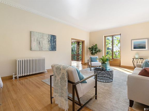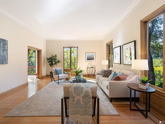 Rare 6BD/4BA 1920s Spanish Mediterranean with 4,400 Sq Ft+ of functional living space perfect for today's at-home lifestyles, yet bursting w/vintage charm, all nestled on a verdant cul-de-sac (where homes rarely become available) in one of Berkeley's most coveted areas. The home features striking views, 10-foot+ ceilings, warm wd flrs, & lots period charm thru-out. The main lvl boasts a grand FLR, FDR w/views, fmly rm w/FP, an eat-in kitchen, an office/Bd/flex rm & a full BA. Up the sweeping stairs is a private Primary Suite, 5 bright & roomy BDs & a 2nd full BA. The ground lvl includes guest quarters w/private entrance & BA ready for family or au-pairs PLUS laundry & bonus rms ready for wine cellar/hobbies. A big, private lot, w/mature plantings & terraced yards, AND a street-level grg, complete this rare offering. Wonderful location, close to world-class shopping/dining/amenities, top-rated schools, parks, Star Market, Claremont Spa & easy BART, bus & freeway commute access.