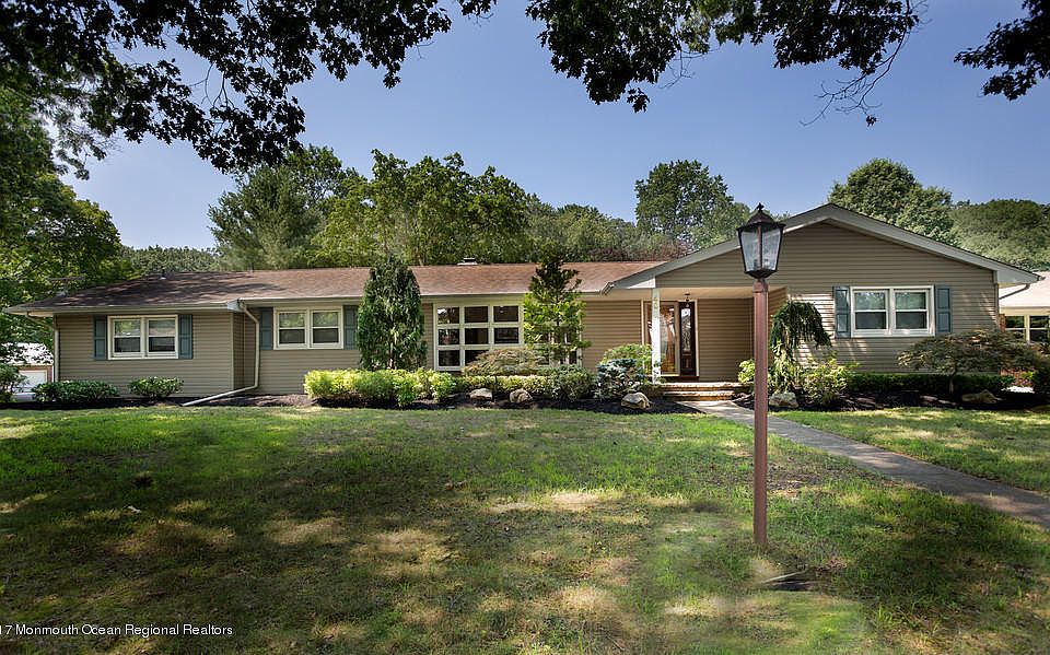 MOVE RIGHT IN to this beautiful 2700 sq foot ranch home located in a quiet neighborhood with a park-like setting. The large, NEWLY UPGRADED eat-in-kitchen boasts new flooring, updated appliances & newly refaced cabinets - it is the heart of the home! There are 4 bedrooms & 3 newer baths on the main level, PLUS A FINISHED BASEMENT that spans the length of the house & includes an additional bedroom & full bath. The picture-perfect backyard includes an IN-GROUND POOL & a large backyard that offers your own serene, private getaway. Other features include hardwood floors throughout much of the home, beautiful bay window, newer windows, central air, wood burning fireplace, & glass sliding doors that lead onto the paver patio. Plenty of space, storage, & sunlight throughout to ... to make this a perfect home for the discriminating buyer!! Walking distance to Freehold's amazing downtown & close to the Freehold Mall, NYC transportation & major highway.