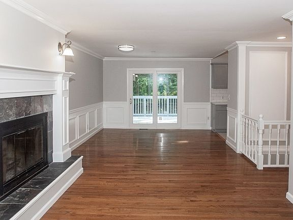 Immaculate modern style home with beautiful hardwood floors and a bright, open and airy layout. This 3 bedroom and 2 full bath home features a 2 car garage, central air, 2 charming fireplaces, withwainscoting and crown molding throughout. Newly signed chefs kitchen featuring designer shaker style cabinets, stainless steel sink and all new appliances. Large glass sliding door invites you back to an oversized deck surrounded by lush greenery and peaceful treelined landscaping. Great location and perfect for entertaining. Don't miss out on this gorgeous property.