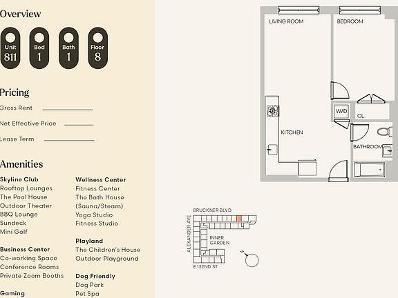 One Bedroom homes at Bruckner House feature high-end finishes, modern appliances, comfortable and well-designed spaces, and large closets. Expansive windows invite an abundance of natural light, brightening every corner and creating a warm, welcoming atmosphere throughout the day.