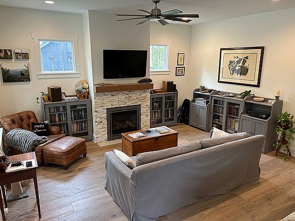 Tucked away on a wooded lot, 40 Buckeye Trail offers a tranquil setting just steps from downtown Brevard and the Brevard Music Center. In one of the most desirable neighborhoods in Brevard, this new home, completed in 2022, offers an open floor-plan, three bedrooms with custom closets, two full baths, gas fireplace, and high-end finishes throughout. Outdoors, the home offers a rocking-chair front porch, two car garage, ample outdoor storage, bike storage and wash station, a fire ring and covered outdoor dining area. The home caters to privacy and easy flow of indoor and outdoor living with inviting light and Mountain View. On the 0.5 acre lot, there is ample space to construct a greenhouse, workshop, or separate garage. The home is currently under contract but accepting showings and backup offers.