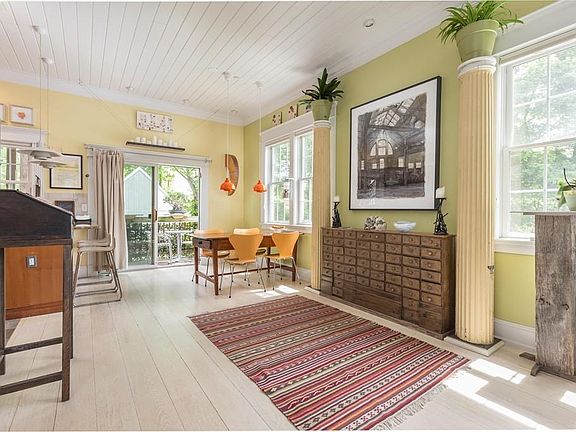 Serene Cedar Grove 2 bed/1.5 bath condo w deeded parking one block from Lower Mills. The living & dining area have 10 foot ceilings, wide board white oak h/w floors, tongue & groove wood ceilings, three piece crown molding & custom recessed lighting throughout. Also, a large bay window, gas fp, custom media shelving and deck access. The kitchen has granite, ss appliances, gas cooking, tall cabinets & slate floor. The 1/2 bath is tucked in the hall leading to the bedrooms. Main bath w tumbled marble is between the bedrooms. Front corner bedroom has a large bay providing extra space & sunlight. The master has access to the deck. There is generous closet space, in-unit laundry, c/a & deeded basement storage (12x12). Butler T is a 1/2 block away. Outdoor enthusiasts will enjoy the neighboring greenspace: Neponset River Greenway Trail, Olmsted designed Dorchester Park & a nearby kayak launch. Foodies will enjoy walking to Bred, Ester, Flat Back Coffee, Lower Mills Tavern and Steel & Rye