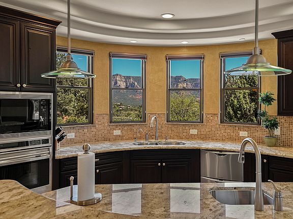 Craving a superbly luxurious home? No expense was spared on this builder's home in Casa Contenta! All Furnishings Included! Granite counters from Italy, travertine floors, gourmet 4 burner stainless steel Wolf stove with grill and griddle, SubZero ref., wine cooler, and prep sink. Open floor plan with travertine floors, coffered ceilings, cozy stacked stone fireplace and French doors to patio with negative edge spa. Stunning red rock views on large, private corner lot. Treat yourself to the master spa bathroom complete with dual head and body jet shower and posh jetted tub. Step on private deck for some rays and views. 2 other bedroom en-suites offer guests supreme comfort. Distinct architectural design includes curved stairway, Venetian plaster walls and custom exterior stonework.