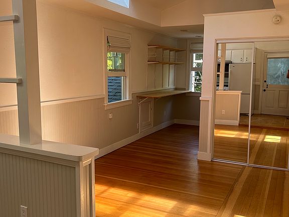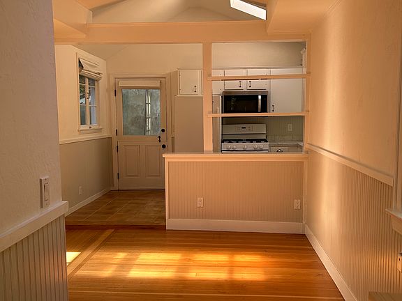 Light filled, beautiful studio surrounded by nature in the hills of San Anselmo. Photos don't do it justice. Situated on a property with 3 units, this studio sits the highest on the property with views galore. Slightly overlaps unit below, yet feels like a separate structure. The unit is accessed by stairs from the street above. Full kitchen with gas stove. Full bathroom with shower over tub. Hardwood floors and tile. Skylights, vaulted ceilings and tons of windows. Private deck with storage room attached. Additional shared storage and laundry room in basement. Additional shared outdoor spaces. Very friendly tenants. This is a small unit, best suited for one tenant (please see floor plan for dimensions). Available early August. Unit is currently occupied and will be shown by appt. after July 14th. Proof of 2.5 x the rent income and good credit score required. One year lease. One month rent security deposit. Utilities not included (except water and trash). Unfurnished. No smoking. Please email a short note about yourself. One year lease
