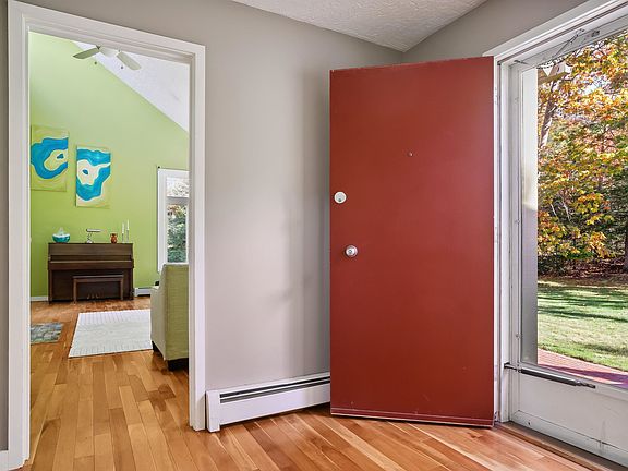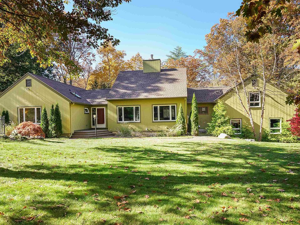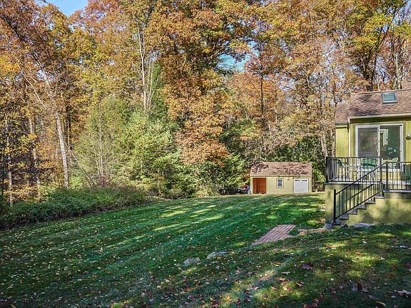 Set on 2.5 wooded acres, this Contemporary Ranch offers a unique, open floor plan perfect for those seeking something beyond the ordinary. Step into the foyer and to your right, you'll find the impressive two-story family room, filled with natural light and featuring a cozy wood-burning fireplace insert. The formal dining room overlooks the yard, and is open to the deck. The updated kitchen includes granite countertops, a peninsula with seating, an island, and premium stainless appliances, including a Bosch oven and dishwasher, and a Wolf cooktop. Just off the kitchen is a versatile sunroom with radiant floor heat, ideal as a eating or sitting area. Need more Living Space? The bonus room offers endless possibilities—a perfect office, in-law or teen suite with its own living area, an additional room, and a full bathroom! Separated from the main living area, the primary bedroom suite features a ¾ bath with tiled shower, and a slider leading to a private patio overlooking the serene inground pool oasis. The home also includes two more spacious bedrooms, an updated full bath, and a convenient laundry room. The finished lower level adds even more space, with a newly finished mudroom and an additional full bath with radiant heat, new tile, and a washer/dryer combo. Additional updates include a new 30-year roof, central AC (excluding the bonus room), a new pool pump, updated flooring, and more. Showings begin Fri Oct 25th after Noon. Open House Sunday, Oct 27 Noon to 1:30 PM.