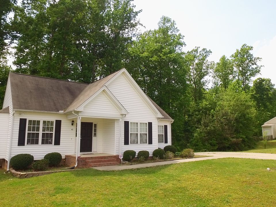 ADORABLE RANCH! No maintenace Exterior. Just min.to Charming Town of Youngsville. Lovely decorator colors, Ceramic Kit.Fl.,Ceramic Flrs. in baths. BIG Gr.rm w/Cathedral Ceiling & Fireplace. Nice spacious eatin Kit.w/ Bay Window, Plenty of Kitchen Cabinets, Nice Wide Lot w/Wooded View. 100% Financing Available. Just Perfect and move in condition.USDA approved financing.