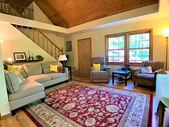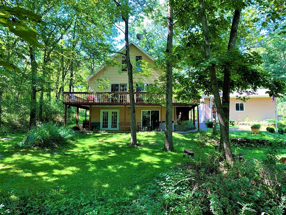 Welcome to your own personal Shangri-La in the woods! Enjoy the serene surroundings of this double lot: the sound of the wind through the trees and water trickling down the creek. The 116 ft, wrap around deck overlooks the creek and the woods and is perfect for wildlife watching - deer, fox, turkeys can all be found passing through the grounds which are adorned with a variety of perennial plants for color throughout the season. The inside is equally pleasing with vaulted wood ceilings and hardwood flooring in the open living dining area. Double sliding doors showcase the beautiful views form both of these rooms! U-shaped kitchen has all the appliances, plenty of counter space and pantry closet for extra storage. Primary bedroom has full private bath with soaker tub, separate shower, and walk-in closet. The main floor also has a 2nd bedroom and laundry room. Upstairs is the charming loft area with book nook, 3rd bedroom and an overlook of the main floor. Want even more? Full walkout basement is finished with a large family room with gas heatilator fireplace and more double doors to continue enjoying the view. There is a separate game room, perfect for a challenging game of ping pong (table and equipment is included), and still more room for storage and a work room. At the end of the day, head out to the creek side firepit right next to the bridge, for a relaxing evening around the fire as you recap your day. Oversized 2 car garage allows room for storage. This property brings all the amenities of Lake Thunderbird - boating, fishing, swimming, pool, beach, nature trails, clubhouse and events. Lake life is great life!