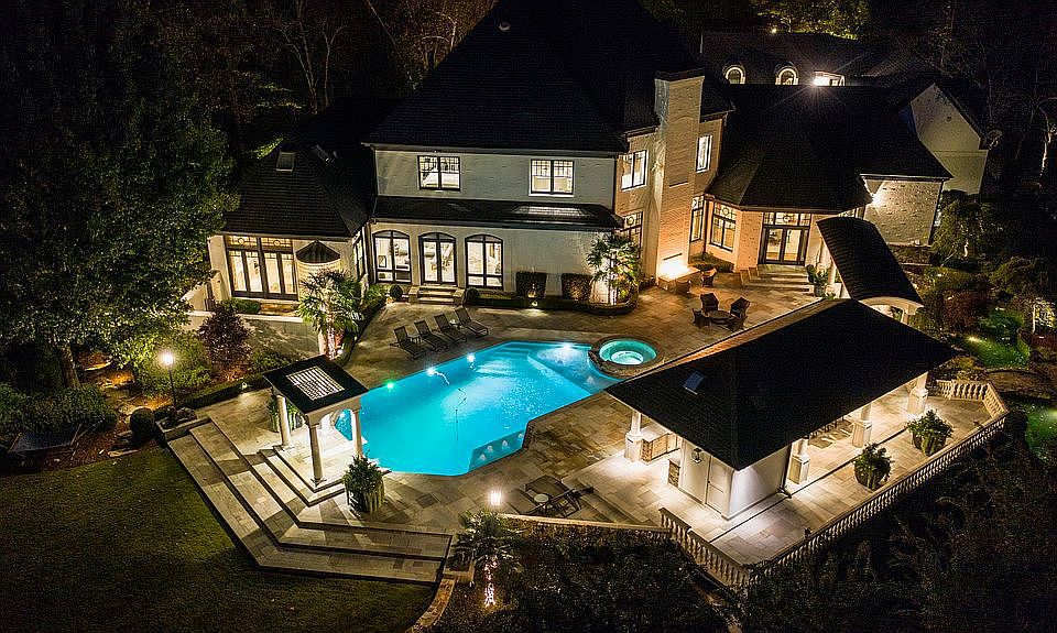 Imagine having a private retreat just minutes from Buckhead. The property features 8.4 usable acres with lake, guest cottage, caretaker home. The residence also features a guest apartment with living room, master bedroom, kitchen and laundry. It has an outside entrance and is over the garages. The latest in Control4 technology, whole house generator, top security, completely fenced with a front and back gate that opens on Indian Trail road. Caretaker/house or home manager office apartment at the back gate away from guest cottage on the lake. The guest cottage overlooks the lake with a screened patio, wood burning fireplace, kitchen and upstairs master with patio overlooking the lake and gazebo. Capable of driving vehicles throughout the property on the golf cart path. New pool and outdoor entertaining pavilion redone with full bath for poolside entertaining and overlooking the property. The property includes golf cart paths, walking trails, waterfalls to the lake, tennis, batting cages and walking trails. Interiors by Stewart Mohr feature high ceilings, open and bright. The kitchen is open to the family room and out to the pool. The master wing on the main has private access to the gym downstairs. Daylight terrace with gym/spa bath, sauna, billiards and wine cellar. Replica of the Fox theater with McIntosh equipment! The back two acres is set up to build another home or exotic car garage. Even land a helicopter. Close to all private schools. Furnishings negotiable. 2020-07-20