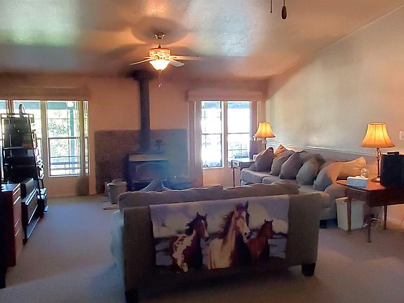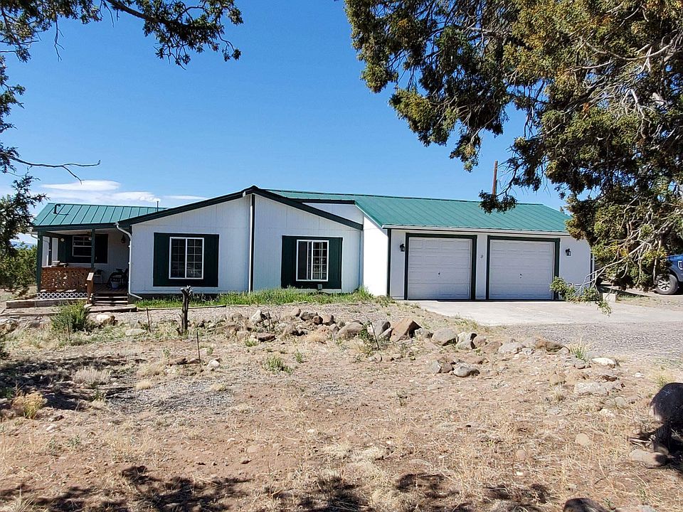 Gorgeous Views! Open floor plan! Property For Sale in the Mountains of New Mexico. Beautiful 1998 Shultz triple-wide manufactured home sitting on 24.71 acres located 7 miles north of Quemado, NM, in Starfire Ranch Subdivision. The home features 1776 square feet of living space, including 3 bedrooms, 2 full baths, dining room, living room, and kitchen. Open floor plan with the primary bedroom located away from the guest rooms. Wonderful views of the the surrounding mountains. The home is heated with wood and, also, central heating system for those cold winter nights. The well has a 3 gallon per minute pump installed, is powered by sold, and has a 3000 gallon storage tank. A two car garage is attached with plenty of storage. There are covered porches on both the east and west side of the home for your outside enjoyment. An 8' x 12' shed provides storage space.