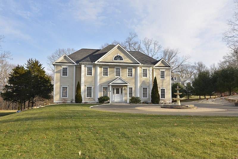 CALL LISTING AGENT DIRECTLY - Leigh Whiteman 203-458-3449. Beautifully sited Guilford home on a cul-de-sac of fine homes and south of Route 1. This 4000+ SF 4 bedroom colonial was built in 2000. The formal foyer, living room and dining room have detailed moldings, custom wainscoting, inlayed hardwood floors and stately columns. The granite and stainless steal gourmet kitchen has large island with 6 burner Viking cook top. The eating area opens to the deck. A two-story family room has a stone fireplace and skylights. There is also a 2nd floor library/study and a 900+ SF walkout lower level with full bath, bar and home theater. Large master has sitting area, large walk-in closet and master bath. The 3 bedrooms are well sized. A drive circles a fountain. Sited on 3.92 acres with a lovely level front and rear yard. Close to Village and Shore with easy access to New Haven.