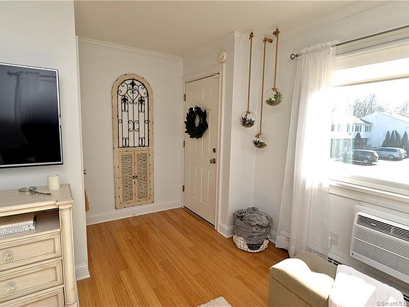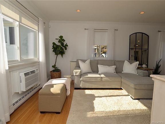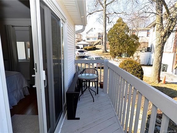 "Right out of House Beautiful" this immaculate, updated unit is beautifully renovated and decorated. Crown molding & bamboo floors thru out. Sunny unit with spacious living room open to dining area & updated kitchen with granite counters & stainless steel appliances. Nice master bedroom with a walk-in closet & sliders to the deck. Updated bath. Great views from the deck! New new windows, door, sliders, wall heaters and hot water heater are a few more features of this most perfect place conveniently situated in Springdale on the New Canaan border. Close to the Merritt parkway & walking distance to the Springdale train station. Low common charges are also a plus. This unit also has its owns storage and laundry plus 2 designated parking spots, one in front and one in the back.
