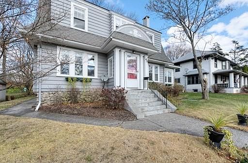 Follow the tree shaded island of green down the middle of Chamberlain Parkway to this quiet setting with easy access to urban amenities...The first item you will notice is the arched pediment over the front door on this four bedroom Dutch Colonial....Open floorplan with plenty of natural sun light and tall ceilings the living - dining combo feature a fireplace...crown moldings and built-in display shelves and storage cabinets...A first floor den could easily be utilized as a bedroom or formal dining room if preferred...the sun room is perfect as a reading area or home office...In addition to the main kitchen there is also an area currently used as a workspace with additional storage and shelves...mudroom with all natural tongue n groove wood...All four bedrooms are located on the second level with hardwood floors and a recent updated full bath~~~Large deck off the kitchen, recent roof on the main house, newer vinyl thermopane windows, landscaped yard, garage access is in the rear yard.