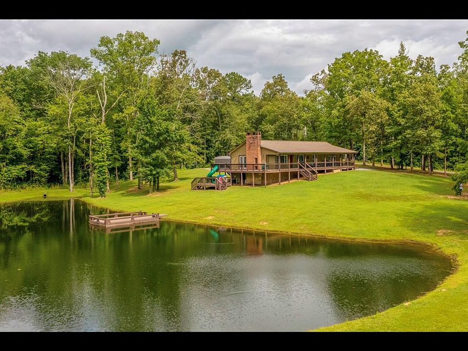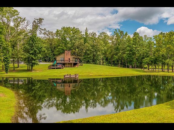 ENTERTAINING DELIGHT with this Gorgeous home on 3.5 acres with stocked pond and dock!!!! This beautiful home has everything you could want with 3 Bedrooms, 2 Bathrooms, Open Floor Plan with Beautiful Kitchen w/ Granite Countertops, Breakfast Bar and Breakfast Area, Stainless Steel Appliances and Tile Floors, Living Room has Hardwood Floors and Beautiful Stone Fireplace, Open Formal Dining Room, Large Master with Stacked Stone Fireplace and Large Walk-in Closet, Master Bathroom offers Large Tile Shower and Double Vanities, Laundry Room, Rocking Chair Front Porch, Large Outdoor Entertaining Area which includes Deck, Built-in Outdoor Grill, Awesome Deck Slide for the kids to play on and a gorgeous stocked pond with dock for all the fishing you want to do. THIS IS DEFINITELY A ONE OF A KIND!!