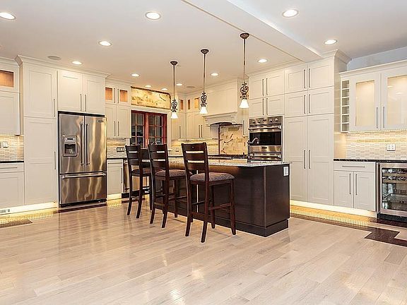 - Kit Dscrp: Main Level, Dining Area, Flooring - Hardwood, Countertops - Stone/Granite/Solid, Cabinets - Upgraded, Kitchen Island, Stainless Steel Appliances, Fireplace, Closet, French Doors, Wet Bar, Open Floor Plan, Recessed Lighting, Balcony / Deck, Window(s) - Bay/Bow/Box, Bathroom - Half, Wine Chiller, Wainscoting, Peninsula