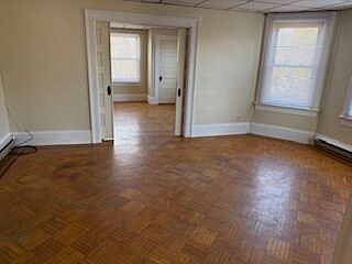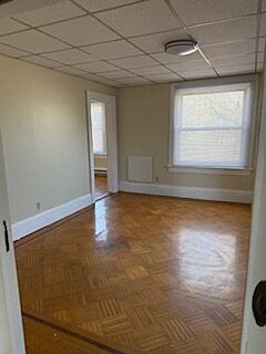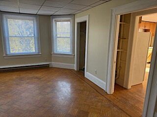 This spacious apartment won't last long. Large BR, large kitchen, large living room. Wood parquet floors! Onsite parking. App operated laundry in basement. Walk to church next door or a half block to downtown. Fresh paint and ceiling tiles.