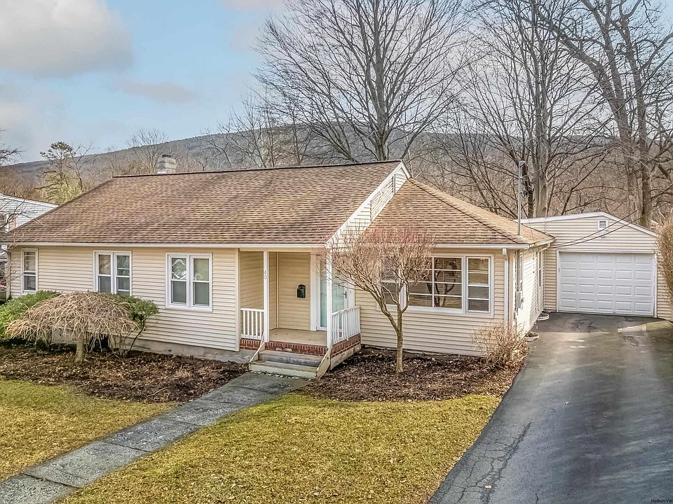 Enjoy convenience and ease in this 3 bedroom, 2 bath village ranch with oversized 1 car attached garage. A few blocks from the heart of the village with its many flourishing offerings; a seasonal farmers market, art events, Shadowland theater, Cohens bakery, hiking trails to Sam’s Point Preserve and the O&W rail trail, restaurants, shops…with the beautiful Shawangunk mountain as a backdrop and the Catskill mountain range to its western border the village setting is abundant in natural beauty and activities. The open layout is ideal for both intimate get- togethers and larger gatherings. As you enter the home there is a cozy living room that flows into a dining room area then into a spacious family room with a door to the backyard. The kitchen has a pass-through window into the family room that anchors all the common area together. The primary bedroom has a walk-in closet with built-ins, a laundry area and full bath. There is a hallway full bath and two additional bedrooms. There are hardwood floors throughout the house. A full basement with a wood burning stove provides supplemental heat in the colder months and plenty of storage. The backyard overlooks a tranquil pond and is a great spot for barbeques and star gazing. Under 2 hours to NYC allows this to be a weekend retreat or use as a full-time home.