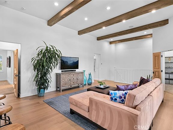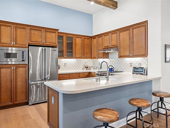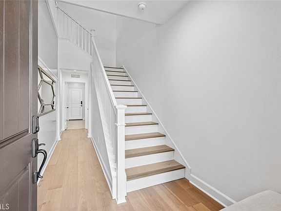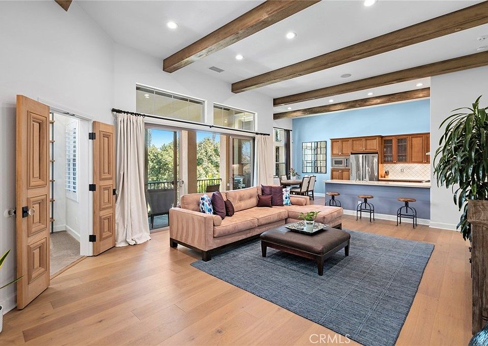 Welcome to your private oasis! This stunning former model home boasts contemporary elegance and meticulous attention to detail. Located in the sought-after Woodbury Community in Irvine, this home offers resort-style living at its finest. The spacious floor plan features 2 primary suites with walk-in custom closet organizers, crown molding, plantation shutters, dual sinks with tiled backsplash and large tiled shower area. A 3rd guest bedroom, along with a conveniently located guest powder room, completes the ensemble of a functional living space. With no neighbors behind or in front, enjoy tranquility and privacy. Step into the open living space, highlighted by 12 ft high beamed ceilings and oversized windows allowing ample natural light throughout the main living area. The kitchen is a chef's dream with custom finished cabinets, Viking stainless steel appliances, and a beautiful full tiled backsplash. Luxury upgrades abound, including an upgraded prewired Sonos Sound system, luxurious engineered hardwood floors throughout, recessed lighting, custom solid doors, Nest Thermostat, and more. Smart home features such as a hardwired alarm system, Chamberlin Smart Garage door opener, Schlage Connect locks, Lutron Caseta Smart Lighting, Ring Doorbell, and Reverse Osmosis Kitchen Water Filter offer convenience and peace of mind. Enjoy greenbelt views from the generous sized balcony, den, great room, and kitchen. The home also features a spacious laundry area with a sink and direct access to an oversized 2-car garage with epoxy flooring. Woodbury residents enjoy a plethora of amenities including swimming pools, heated spas, clubhouse, floodlit tennis, pickleball and basketball courts, playgrounds, and nearby access to Jeffrey Trail for outdoor recreation. Conveniently located in Irvine, this home is walking distance to amenities, Woodbury Shopping Center and The Great Park. Award-winning Irvine Unified Schools, including Woodbury Elementary, Jeffrey Trail Middle School, Portola High School and Irvine Montessori Schools, just a short distance away. This home offers the perfect blend of luxury, comfort, and convenience. Don't miss out on the opportunity to make this your dream home!