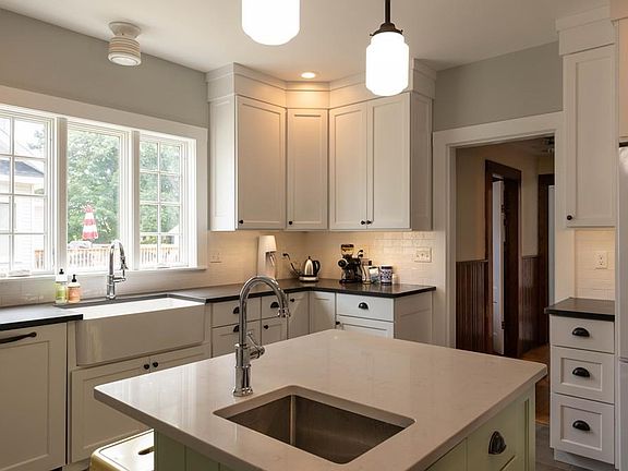 Charming 4 bedroom, 2.5 bath farmhouse within walking distance to vibrant Cottage Street in Easthampton. This home combines a wonderful mix of original character and thoughtful updates including: gorgeous eat-in kitchen, first floor master suite, additional upstairs half bath, new boiler, Mass Saves energy updates, removal of asbestos in basement, removal of knob and tube wiring, extensive landscaping to beautiful backyard, brand new carpet in master bedroom, etc. There are 2 three season enclosed porches, first floor laundry, a charming original beadboard butler's pantry with extensive storage, a detached one car garage, paved driveway with ample additional parking, two pellet stoves, a back deck off of the master suite and a charming side porch entryway. Tour the gorgeous yard, or enjoy the views of Mt. Tom. Conveniently located right by 141 for easy access to 91 and Holyoke. 15 minutes from Northampton, in the heart of Easthampton. Come see this wonderful house in person!